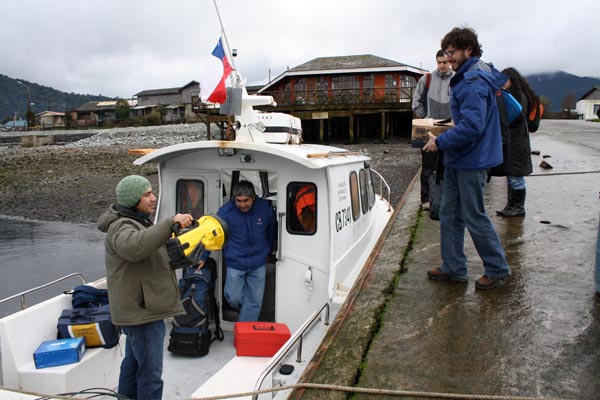 El traslado del equipo de salud hacia Huinay lo financia la Fundación San Ignacio del Huinay, entidad que facilita su lancha rápida. Si el viaje en lancha convencional dura tres o más horas, en esta lancha de dos motores se llega a Huinay en poco más de una hora.
