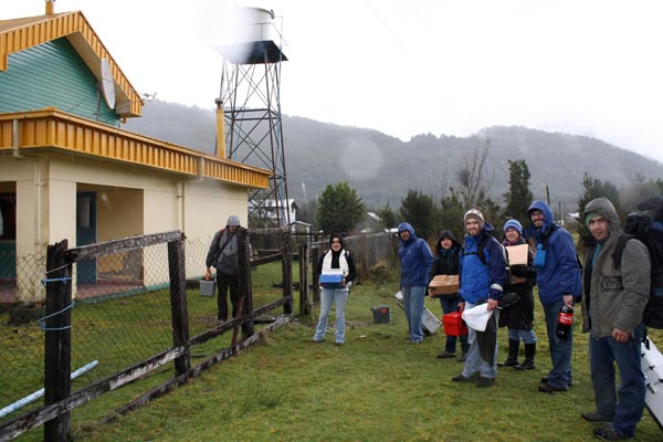 El equipo que participó en la última ronda a Huinay, el 14 de septiembre, estuvo conformado por un amplio espectro de profesionales. De izquierda a derecha: Edgardo Gómez, interno de odontología; Andrea García, técnico en odontología; Maximiliano López, odontólogo; Rodrigo Palma, médico; Teodoro Moya, matrón; Andrea Subiabre, interna de psicología; Claudio Seda, chofer; Tito Castillo, paramédico; y Marcela Leiva, técnico dental.