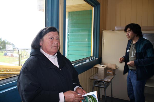Adelina Hernández asistió a la ronda para que el doctor Rodrigo Palma le controlara su hipertensión, al igual que otros pacientes que acudieron ese día, como su hermano Sergio Hernández. Ruth González llevó a la pequeña Martina para que le revisaran “unas ronchitas”. Estos pacientes dicen que la ronda médica es útil, especialmente para abastecerse de los medicamentos que les permiten mantener a raya sus enfermedades crónicas. En cuanto a cómo es vivir en Huinay, coinciden en que es bonito y tranquilo, y que desde que opera la lancha de recorrido San Sebastián, que pasa por los principales lugares poblados del fiordo dos veces por semana, todo es más fácil. “Antes era muy sacrificado”, recuerdan.