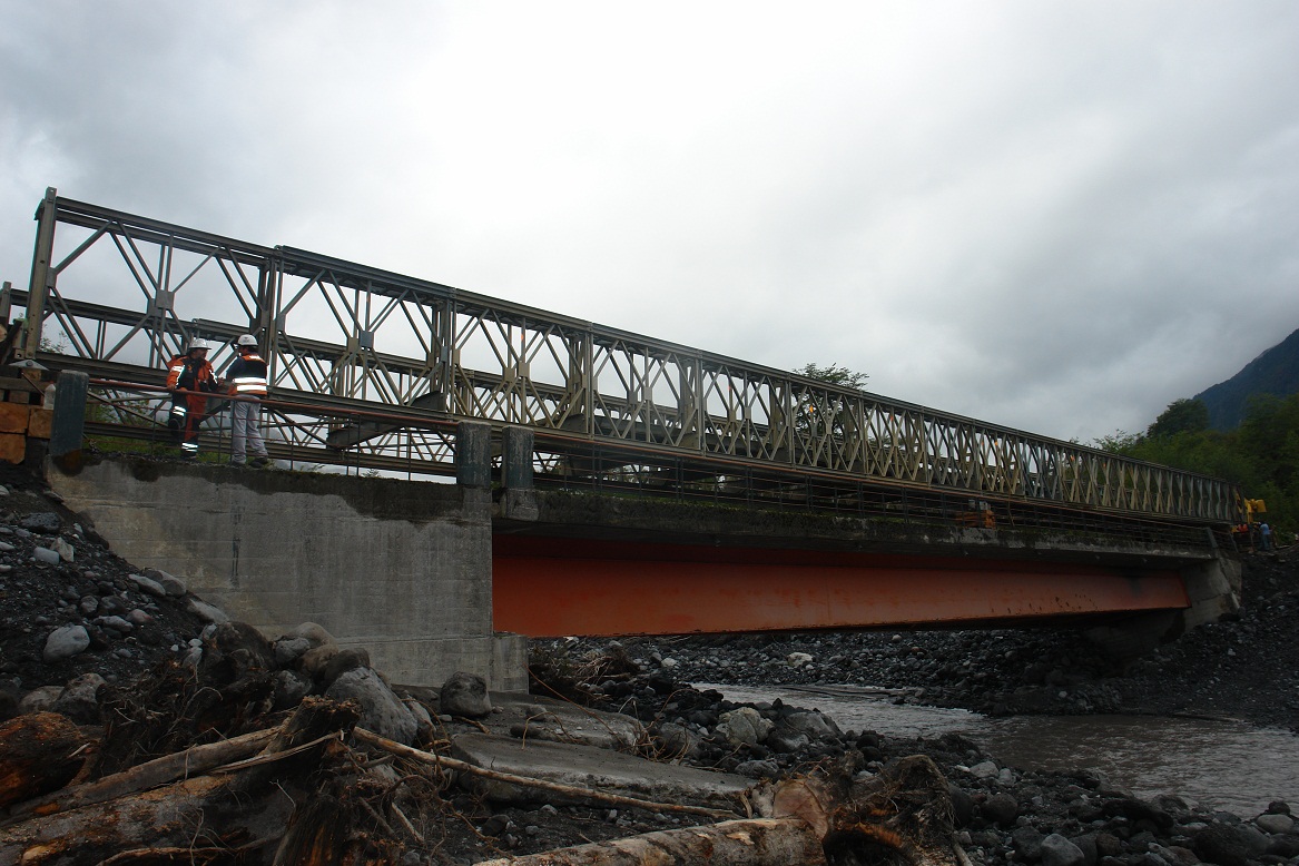 Durante la emergencia de la erupción del volcán Chaitén, Vialidad contó con un puente mecano de similares características, el que permitió garantizar la conectividad de la ruta entre Chaitén y Caleta Gonzalo.