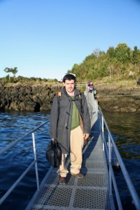 Luis Maldonado ocupa este medio de transporte los lunes y los viernes. “Durante la semana vivo en Llanchid, pero los fines de semana los paso en Hornopirén”, explica este profesor que más tarde dirá que lo más gratificante de su labor es tener la posibilidad de influir en la vida de sus alumnos, de hacerlos ver que, si estudian, pueden cambiar el rumbo de sus vidas.