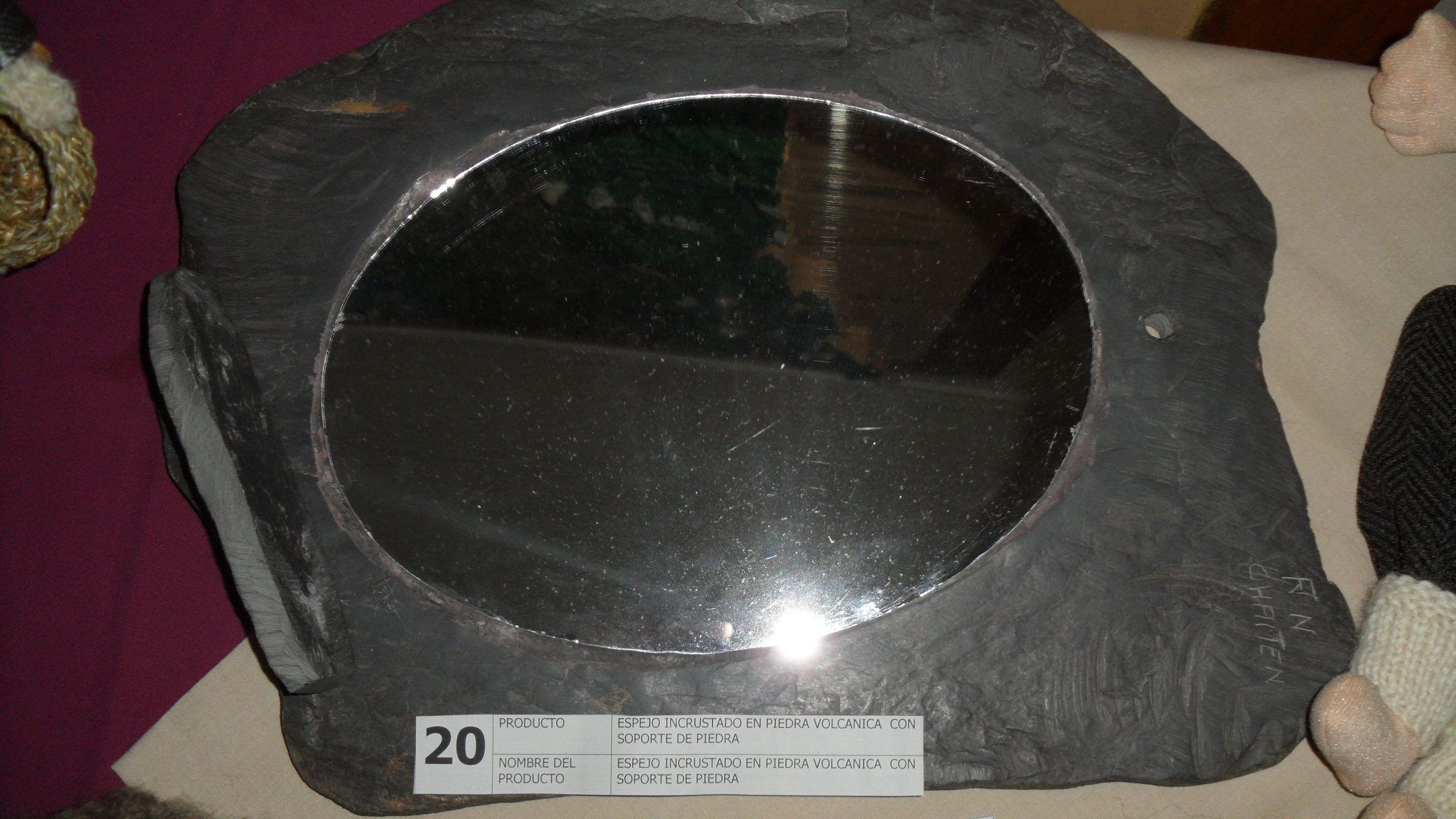 PREMIO INNOVACIÓN DEL PRODUCTO: “ESPEJO INCRUSTADO EN PIEDRA VOLCÁNICA CON SOPORTE DE PIEDRA”, DE RENÉ NAHUELCAR, CHAITÉN, COMUNA DE CHAITÉN